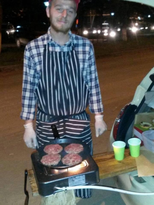 ცენტრალურ ადგილებში ბურგერებს ამზადებს და ყიდის